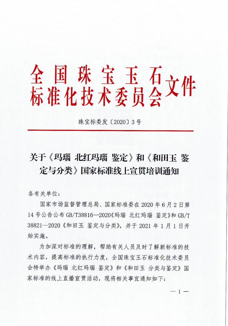 關(guān)于《瑪瑙 北紅瑪瑙 鑒定》和《和田玉 鑒定與分類》國家標(biāo)準(zhǔn)線上宣貫培訓(xùn)通知