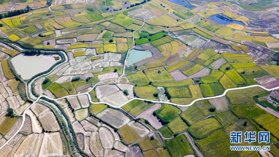 安徽省滁州市鳳陽小崗村的田野景象(2018年9月27日攝,無人機(jī)照片)。新華社記者 張端 攝