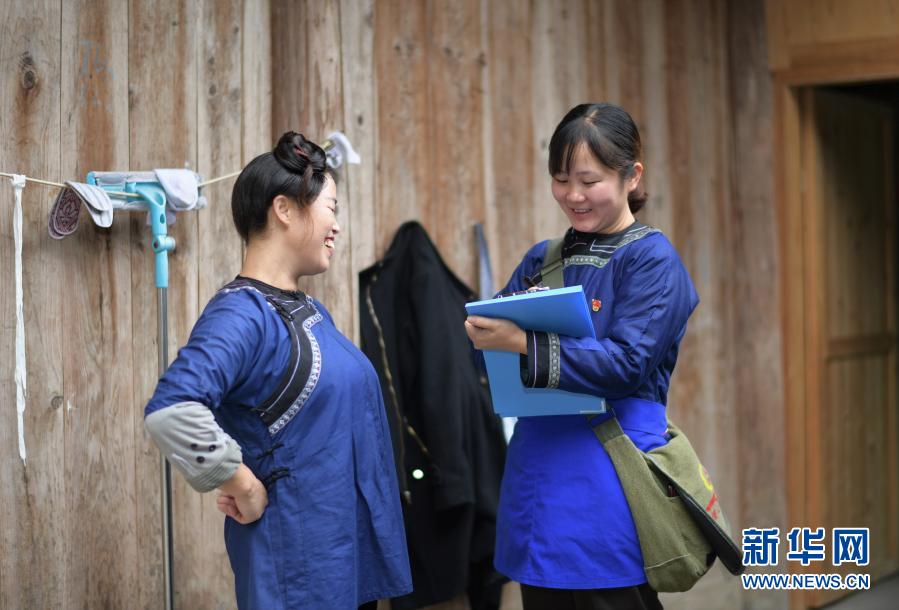 貴州省黔東南苗族侗族自治州榕江縣平江鎮(zhèn)巴魯村網(wǎng)格員劉園(右)走訪結(jié)對幫扶戶時(shí),與村民韋福琴核對生產(chǎn)生活情況(2020年11月16日攝)。新華社記者 楊楹 攝