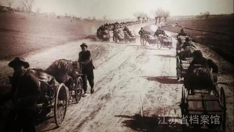 淮海戰(zhàn)役期間,浩浩蕩蕩的人民支前大軍。圖片來源:江蘇省檔案館