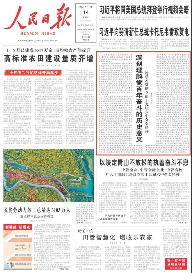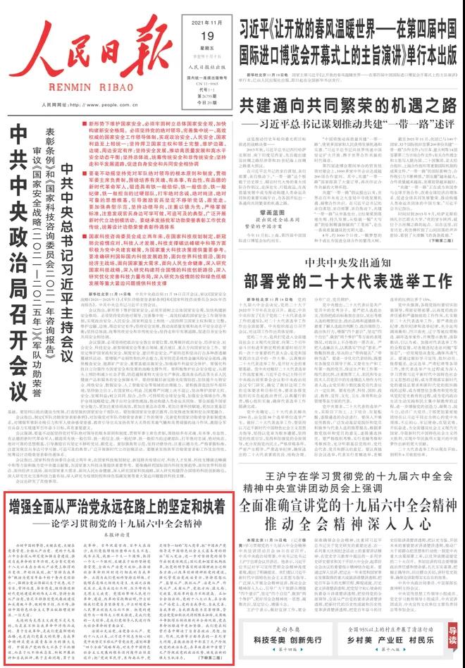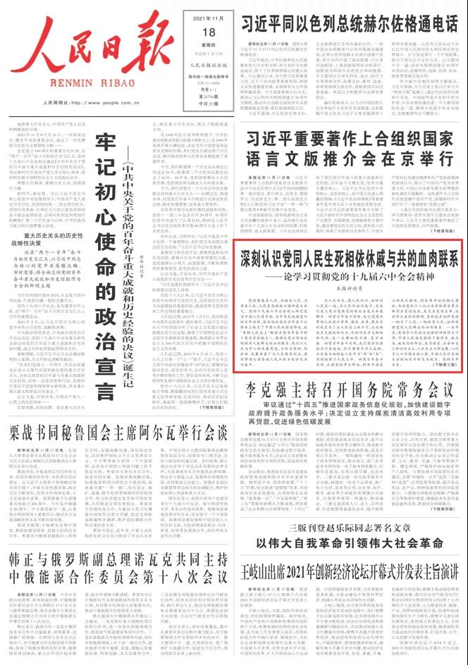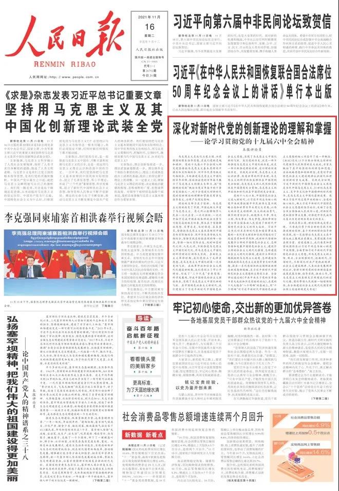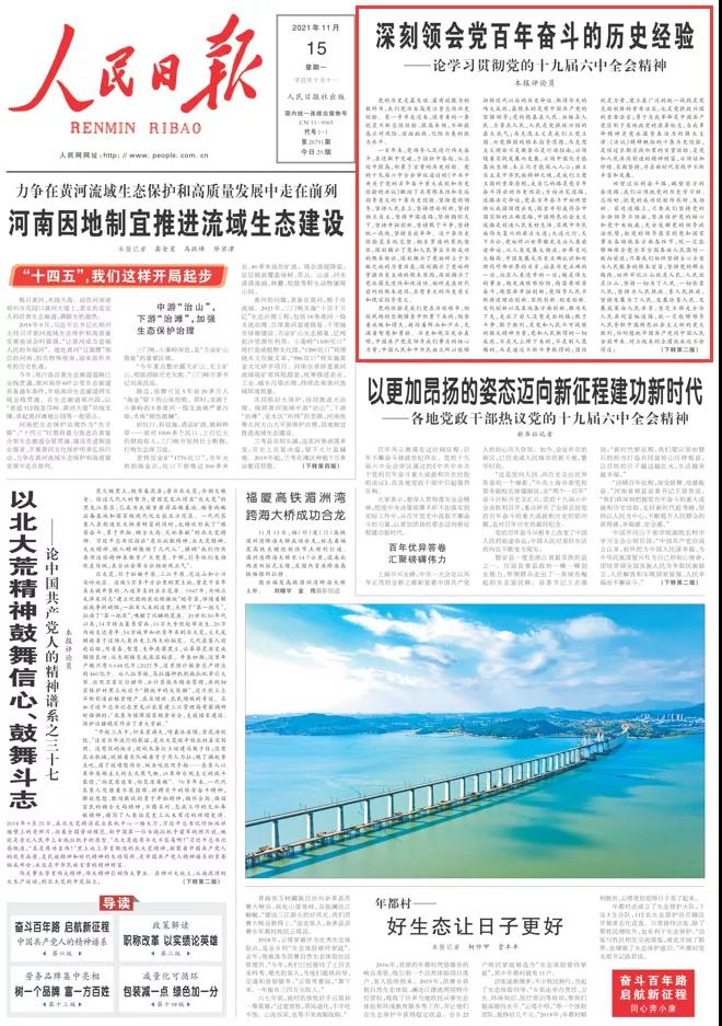 重磅!人民日報(bào)八論學(xué)習(xí)貫徹黨的十九屆六中全會(huì)精神