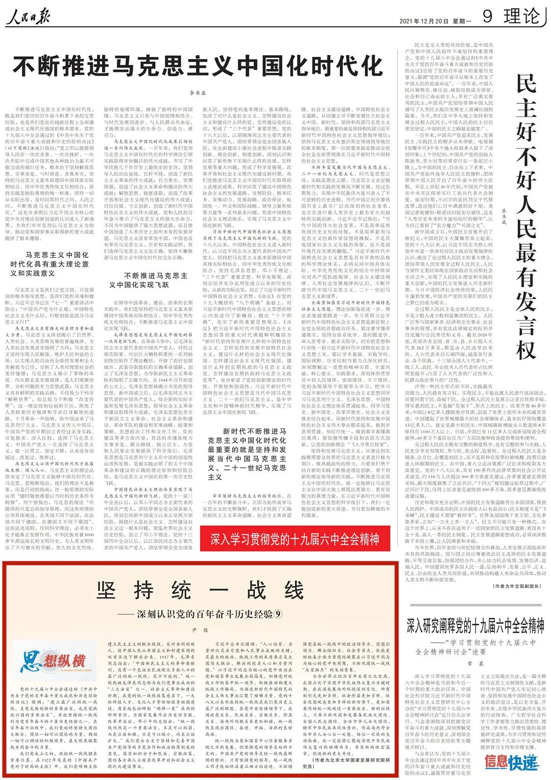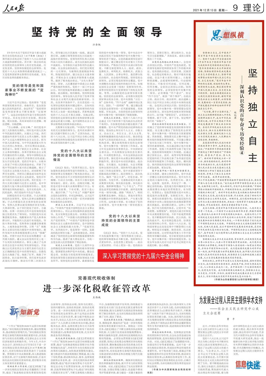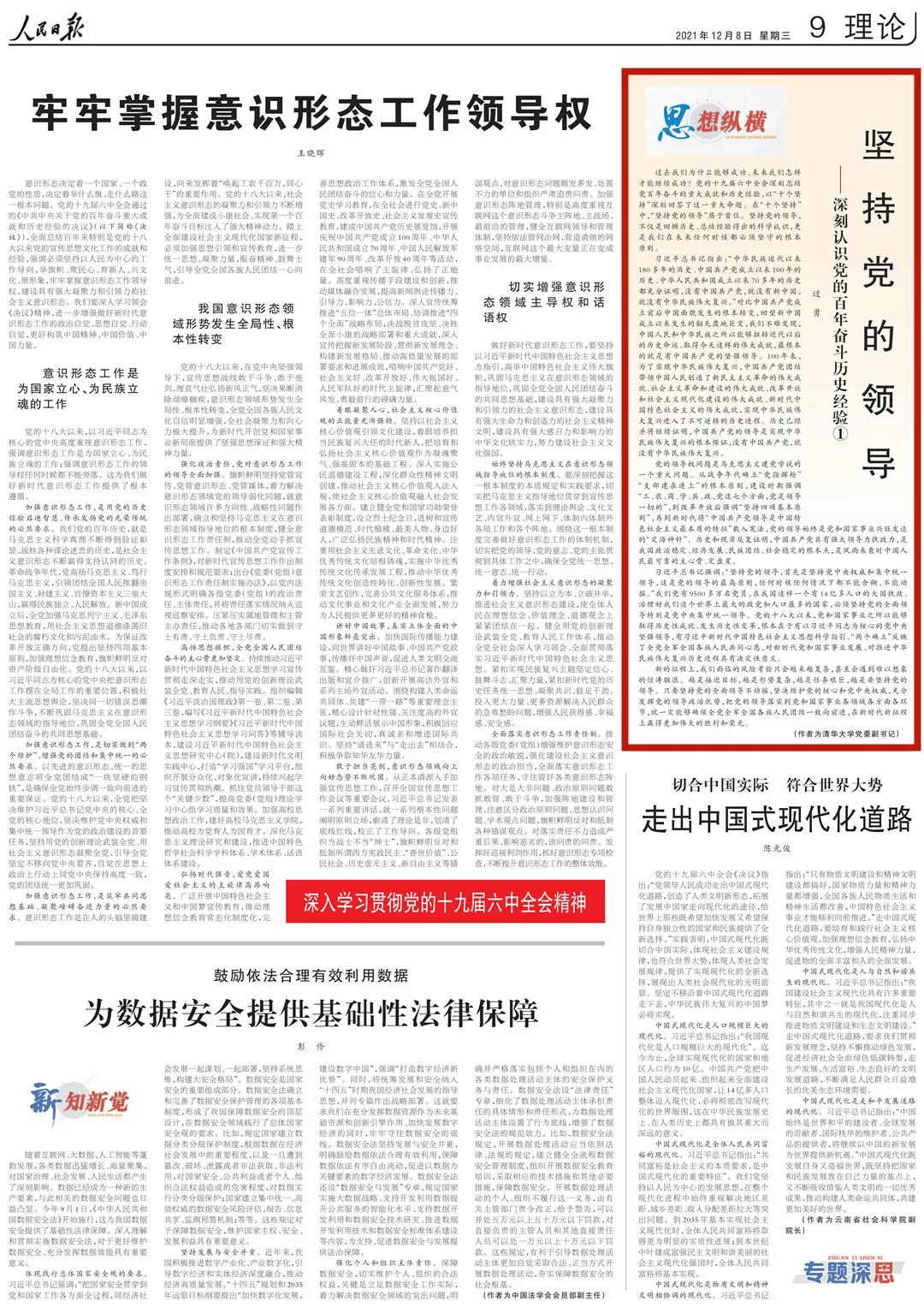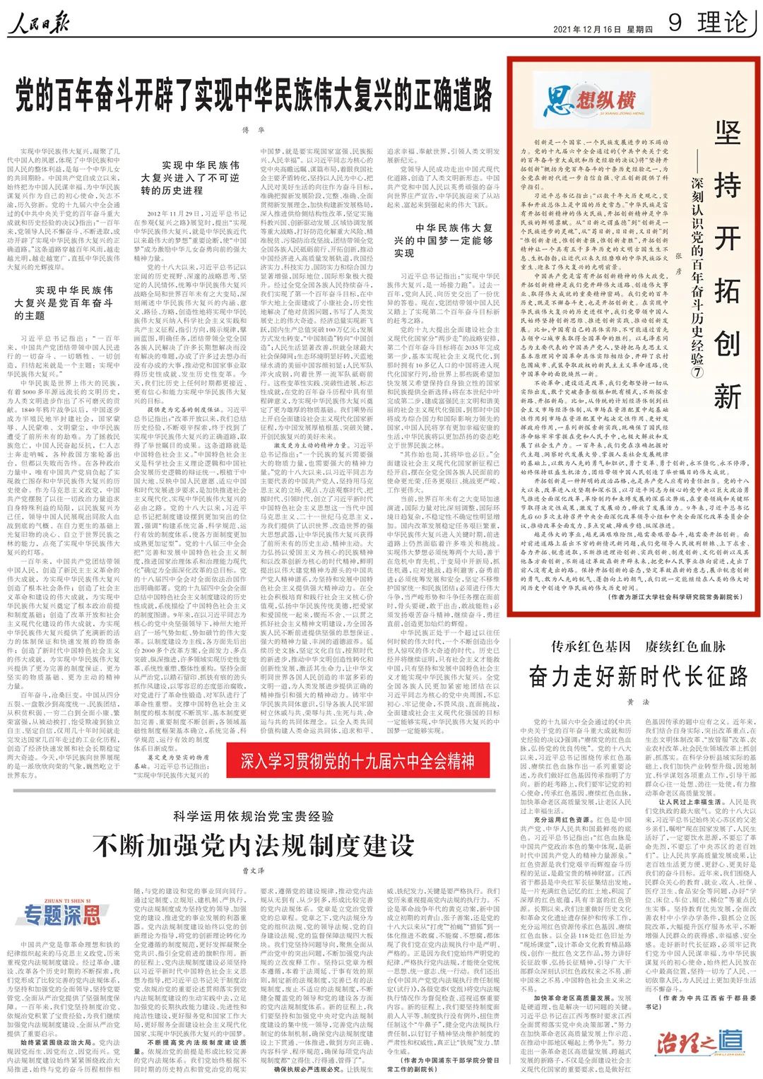 為幫助廣大讀者深刻認(rèn)識(shí)黨的百年奮斗歷史經(jīng)驗(yàn),《人民日?qǐng)?bào)》理論版“思想縱橫”欄目近日連續(xù)刊發(fā)了10篇解讀文章,我們對(duì)此進(jìn)行了整理,供大家集中學(xué)習(xí)參考。