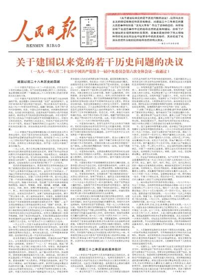 1981年7月1日,《人民日報》刊發(fā)《關(guān)于建國以來黨的若干歷史問題的決議》。資料照片