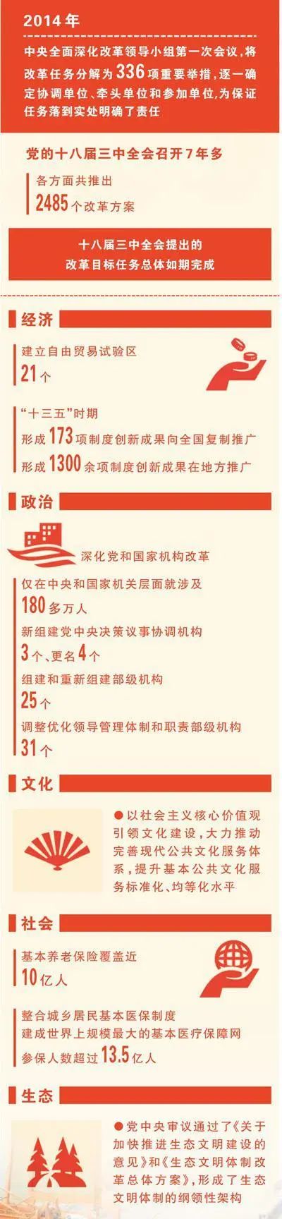 黨的十八屆三中全會—— 堅定不移高舉改革開放大旗(輝煌歷程) 2013年11月9日至12日,黨的十八屆三中全會在北京舉行。 全會聽取和討論了習近平總書記受中央政治局委托作的工作報告,審議通過了《中共中央關于全面深化改革若干重大問題的決定》。習近平總書記就《決定(討論稿)》向全會作了說明。 這是一份具有里程碑意義的宣言書,對中國走什么路、向何處去這個帶有方向性、戰(zhàn)略性的重大問題作出了旗幟鮮明的回答:高舉改革開放旗幟、努力開拓中國特色社會主義事業(yè)更加廣闊的前景。 這是一份具有劃時代意義的藍圖,對在新的歷史起點上全面深化改革作出戰(zhàn)略部署,在理論上有一系列重大創(chuàng)新,在實踐上有一系列重大突破,為實現中華民族偉大復興的中國夢,勾勒出改革路線圖和時間表。 新世紀新階段,改革開放航船,沿著黨的十一屆三中全會以來開辟的正確航道,又一次揚帆起航。 宏偉壯麗的改革事業(yè)到了關鍵時刻 看似尋常最奇崛,成如容易卻艱辛。 時間回溯到2013年金秋。 此時的中國,再次來到了事關前途命運的歷史關口。經濟長期高速增長過程中積累的一系列深層次矛盾不斷積聚,舊的問題解決了,新的問題又產生,必須在更多領域、更深層次全面深化改革。 ——全面建成小康社會、加快推進社會主義現代化的宏偉藍圖,要求全面深化改革; ——堅持和發(fā)展中國特色社會主義,要求全面深化改革; ——解決中國發(fā)展面臨的一系列突出矛盾和挑戰(zhàn),實現經濟社會持續(xù)健康發(fā)展,要求全面深化改革; ——順應時代潮流,滿足人民期待,保持黨和國家生機活力,要求全面深化改革…… 時代課題,擺在新一屆黨中央領導集體面前。 廣東、河北、甘肅、海南、天津、四川、湖北、遼寧、湖南……黨的十八大以來,習近平總書記調研的足跡遍及大江南北,遍及社區(qū)、鄉(xiāng)村、企業(yè)、學校??倳浺陨铄涞亩床炝透呶萁驳膽?zhàn)略眼光,提出了全面深化改革需要調查研究的6個重大問題—— 進一步形成全國統一的市場體系,形成公平競爭的發(fā)展環(huán)境;進一步增強經濟發(fā)展活力,為實現經濟持續(xù)健康發(fā)展提供不竭動力;進一步提高宏觀調控水平,提高政府效率和效能;進一步增強社會發(fā)展活力,促進社會和諧穩(wěn)定;進一步實現社會公平正義,通過制度安排更好保障人民群眾各方面權益;進一步提高黨的領導水平和執(zhí)政能力,充分發(fā)揮黨總攬全局、協調各方的作用。 這6個重要課題,直指中國改革發(fā)展的關鍵。 1978年,黨的十一屆三中全會如平地驚雷,打破堅冰,開啟波瀾壯闊的改革開放航程。 2013年,宏偉壯麗的改革事業(yè)又一次到了關鍵時刻,決定著中華民族復興偉業(yè)的圓夢藍圖徐徐展開。 為謀定未來作出全面系統的戰(zhàn)略部署 2013年11月12日,中國再次吸引了世界關注的目光。 下午3時,黨的十八屆三中全會舉行閉幕會,出席全會的中央委員經表決,一致通過了《中共中央關于全面深化改革若干重大問題的決定》。 當習近平總書記宣布《決定》通過時,會場上響起了熱烈的掌聲。 翻開這份決定,從以經濟體制改革為主到全面深化經濟、政治、文化、社會、生態(tài)文明體制和黨的建設制度改革,是新中國成立以來最為全面系統的改革部署。 “相比過去,新時代改革開放具有許多新的內涵和特點,其中很重要的一點就是制度建設分量更重,改革更多面對的是深層次體制機制問題,對改革頂層設計的要求更高,對改革的系統性、整體性、協同性要求更強,相應地建章立制、構建體系的任務更重?!绷暯娇倳涻r明指出新時代改革開放的特點。 十八屆三中全會把國家治理體系和治理能力建設擺到更加突出的位置,通過加強頂層設計、系統配套、整體推進,為謀定未來作出了全面系統的戰(zhàn)略部署。 ——《決定》明確了全面深化改革的總目標,體現了中國共產黨人的政治勇氣:完善和發(fā)展中國特色社會主義制度,推進國家治理體系和治理能力現代化。 ——《決定》指出了全面深化改革的目的,體現了中國共產黨人的必勝信心:進一步解放思想、解放和發(fā)展社會生產力、解放和增強社會活力。 ——《決定》部署了全面深化改革的重點,體現了中國共產黨人的堅強決心:必須以經濟體制改革為重點、發(fā)揮經濟體制改革牽引作用。 ——《決定》提出了全面深化改革的出發(fā)點和落腳點,體現了中國共產黨人的崇高理念:全面深化改革必須以促進社會公平正義、增進人民福祉為出發(fā)點和落腳點。 由此,中國改革開放跨入全新境界。 各方面軍迅速挺進全面深化改革主戰(zhàn)場 方向決定道路,道路決定命運。 ——黨的十八屆三中全會,彰顯的是中國共產黨人的寬廣眼界。習近平總書記指出,我們必須正確認識國際國內形勢新變化,自覺適應實現全面建成小康社會目標新要求,把握住、利用好發(fā)展機遇,看得到、應對好風險挑戰(zhàn),以更加堅定的信心、更加有效的舉措推進改革開放。 ——黨的十八屆三中全會,彰顯的是中國共產黨人的責任擔當。習近平總書記指出,我們要堅持改革開放正確方向,敢于啃硬骨頭,敢于涉險灘,敢于向積存多年的頑瘴痼疾開刀,切實做到改革不停頓、開放不止步。 ——黨的十八屆三中全會,彰顯的是中國共產黨人的政治堅定。習近平總