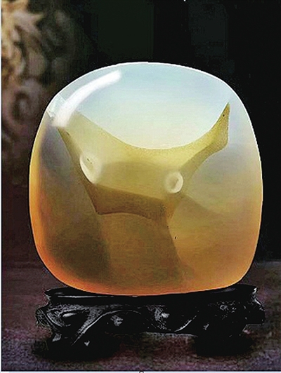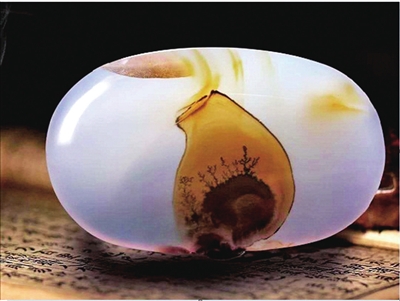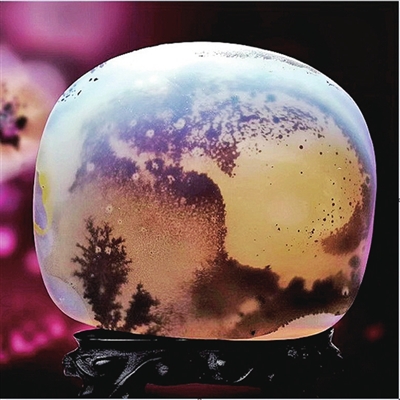 海洋玉髓因溫潤(rùn)、通透的質(zhì)地常用于打造珠寶首飾,也因豐富的色彩、花紋、圖案被廣泛用于奇石收藏。(薛潔 收藏)