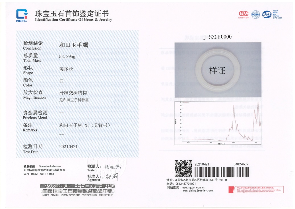 ▲珠寶國檢(NGTC)和田玉子料鑒定證書樣證