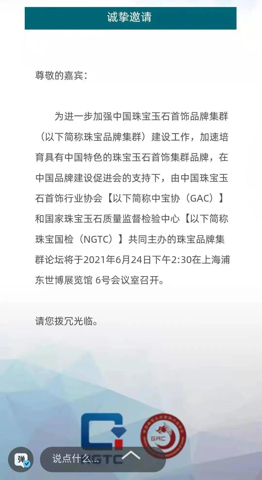 【邀請函】中國珠寶玉石首飾品牌集群論壇即將召開