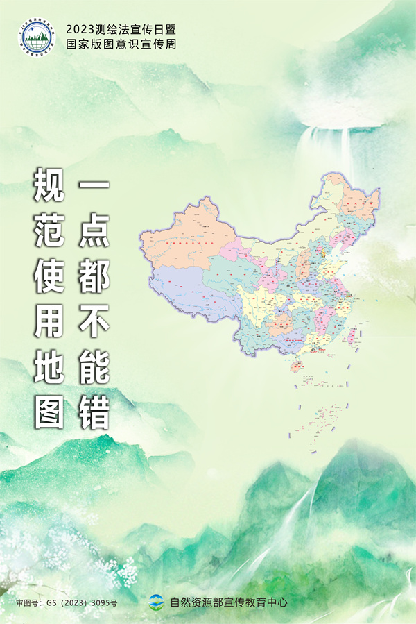2023測繪法宣傳日暨國家版圖意識宣傳周即將到來,自然資源部宣傳教育中心設計了宣傳海報供各地下載使用。本海報使用過程中嚴禁變形,僅限于非商業(yè)、公益性使用,如用于其他途徑,使用者自負法律責任。