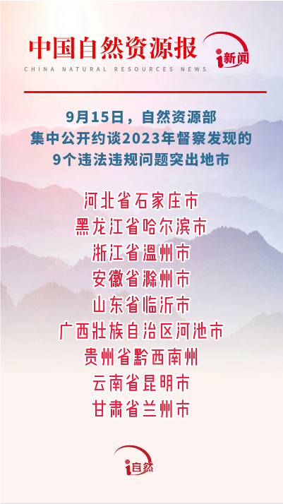 自然資源部集中公開約談2023年督察發(fā)現(xiàn)的9個違法違規(guī)問題突出地市