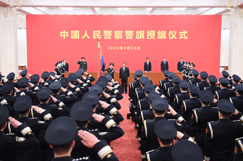 8月26日,中國人民警察警旗授旗儀式在人民大會(huì)堂舉行。中共中央總書記、國家主席、中央軍委主席習(xí)近平向中國人民警察隊(duì)伍授旗并致訓(xùn)詞。新華社記者 張領(lǐng) 攝