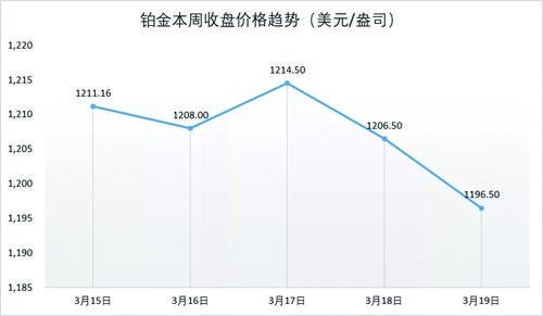 鉑金一周收盤價格趨勢(美元/盎司)