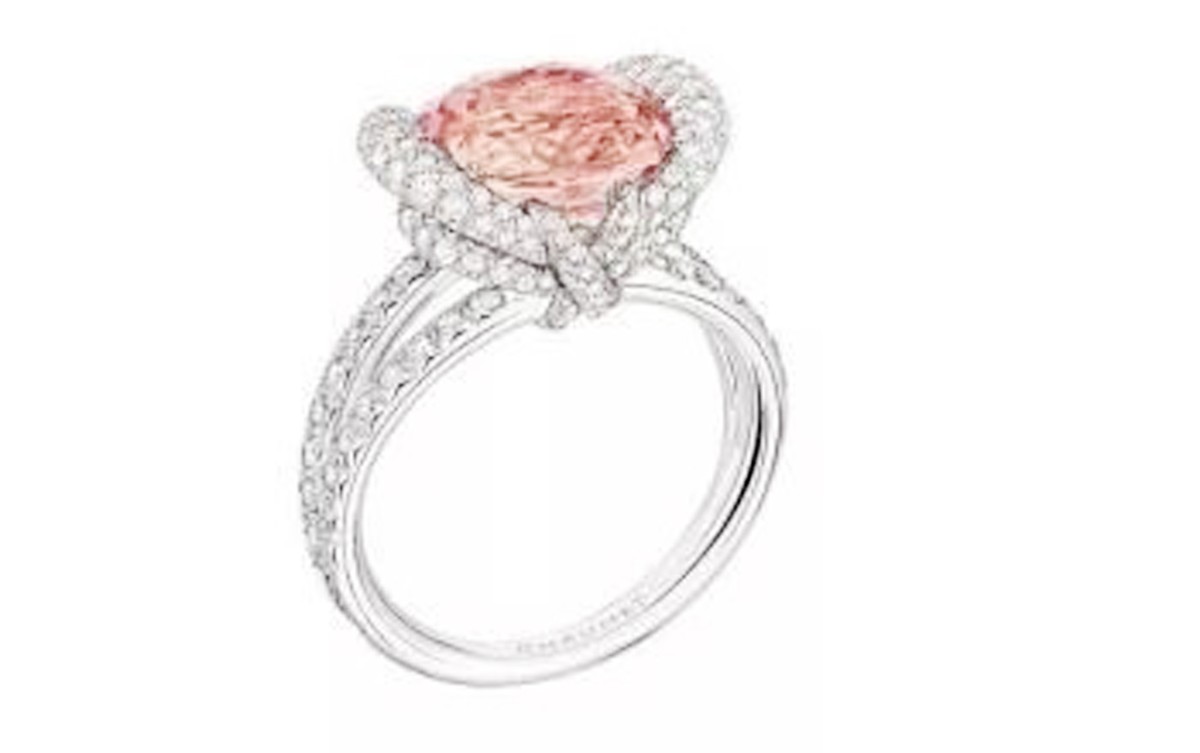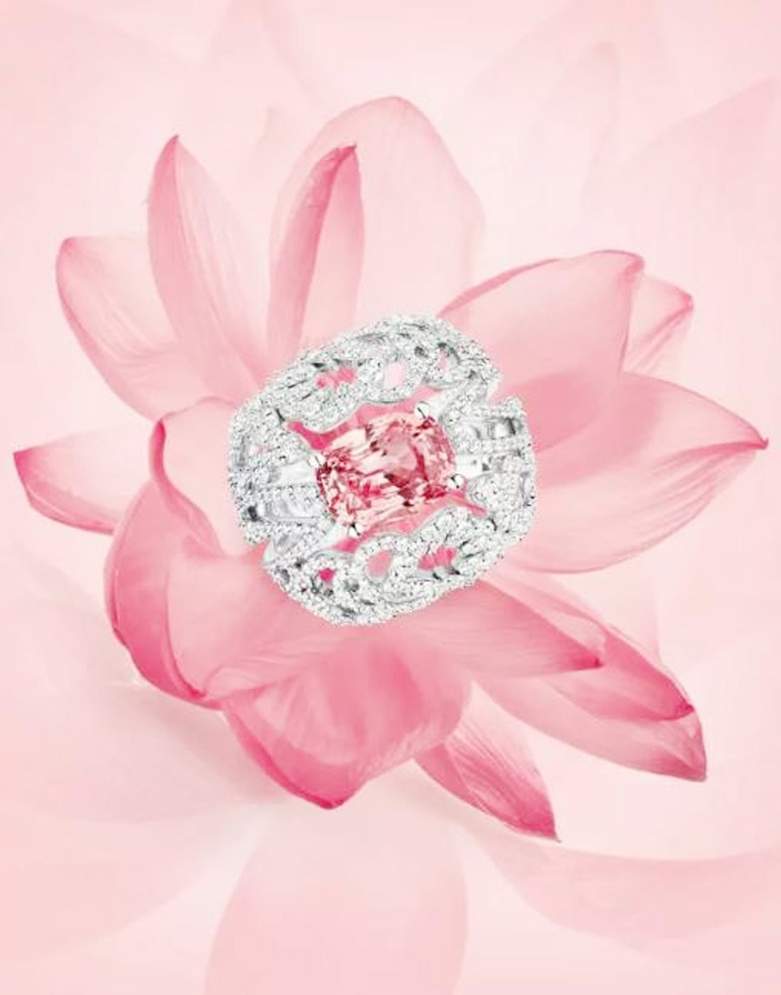 尚美巴黎的這枚帕帕拉恰戒指也是驚艷了不少人。鉆石的搭配襯托出帕帕拉恰夢幻純凈的美感。