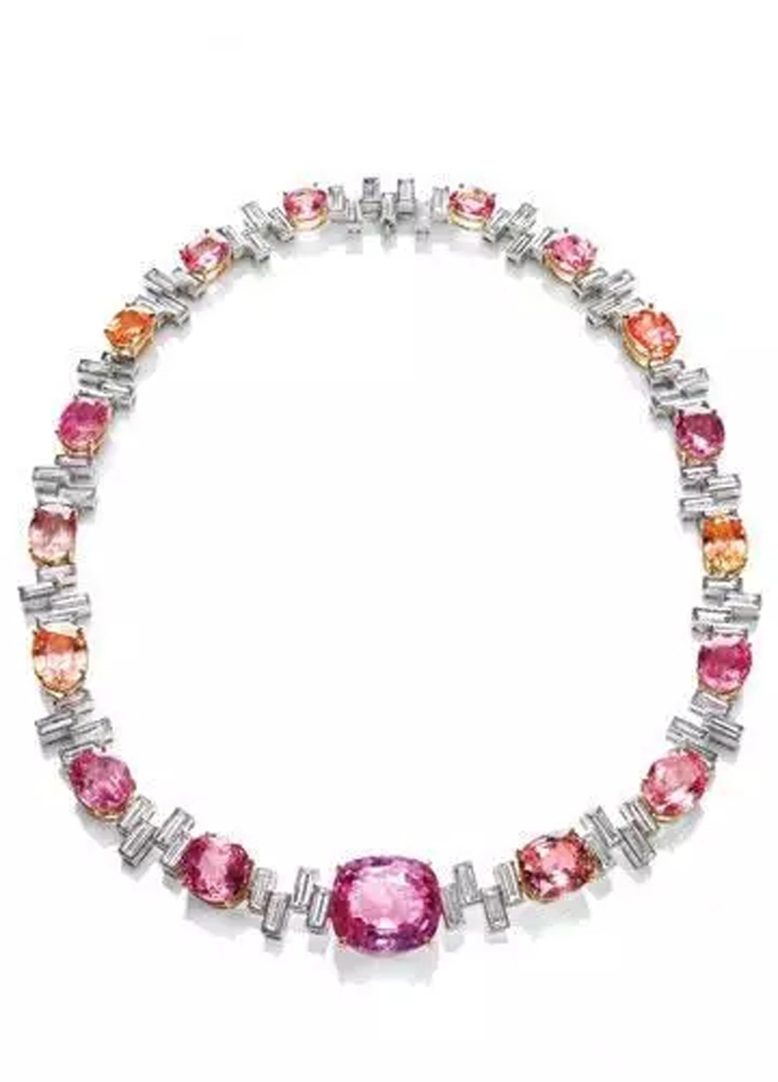Harry Winston海瑞溫斯頓 Sunset系列將不同比例的粉橙色帕帕拉恰富有韻律感地串聯(lián)起來,優(yōu)雅貴氣。