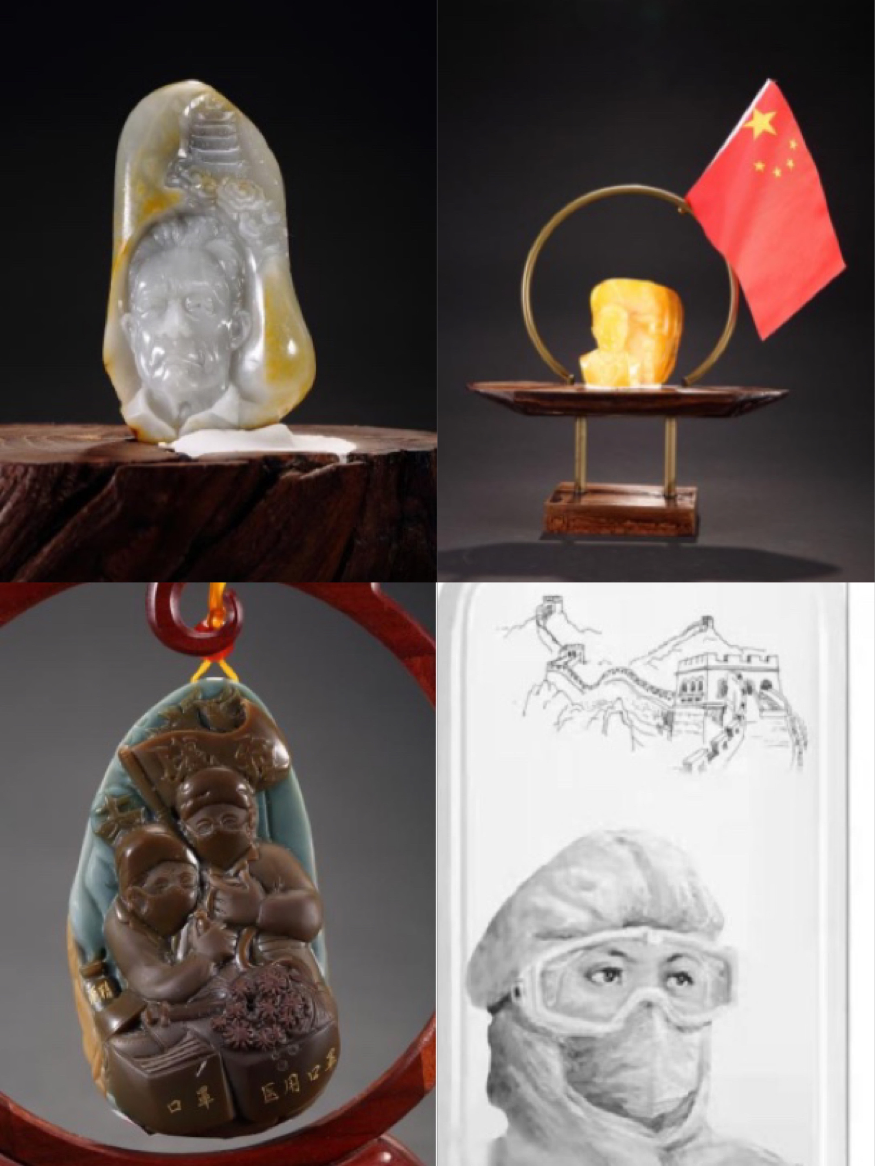突發(fā)的疫情牽動無數(shù)人心,上海寶玉石人立足特長,充分發(fā)揮自身優(yōu)勢,積極投身以“藝”抗疫的戰(zhàn)斗當中,創(chuàng)作《眾志成城·共同戰(zhàn)疫》、《大山·鐘南山》、《國士無雙》、《最美逆行者》等作品,用中國玉文化凝練、傳承的工匠精神,捕捉溫情時刻、致敬偉大的時代英雄,傳播正能量,在疫情防控工作中貢獻力量,展現(xiàn)擔當,鼓舞抗疫斗志,傳遞上海城市溫度。