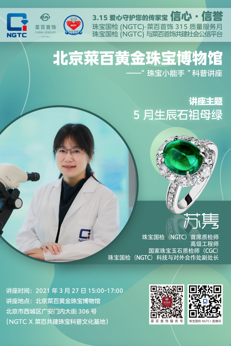 講座專家:珠寶國檢(NGTC)首席質(zhì)檢師、高級工程師、珠寶國檢(NGTC)科外處副主任蘇雋