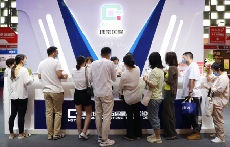 6月26日是上海國際珠寶首飾展覽會(以下簡稱上海展)開展的第三天。恰逢周末,自然資源部珠寶玉石首飾管理中心(國家珠寶玉石質(zhì)量監(jiān)督檢驗中心)(NGTC)【以下簡稱珠寶國檢(NGTC)】展位(展位號:1C01-1C12)迎來人潮高峰,消費者紛紛拿著準(zhǔn)備購買的珠寶玉石首飾產(chǎn)品前來免費檢測、咨詢。