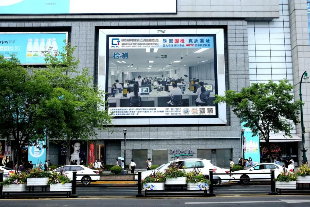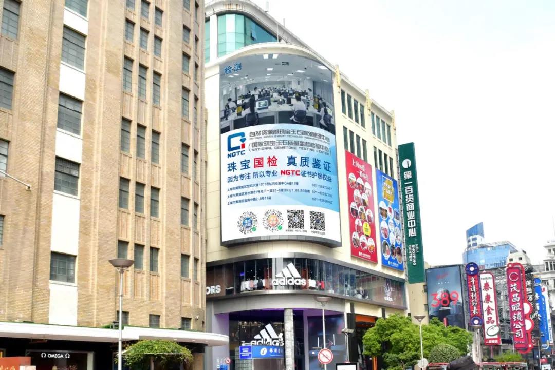 珠寶國(guó)檢(NGTC)上海淮海路商圈蘭生大廈都市大屏投放效果圖