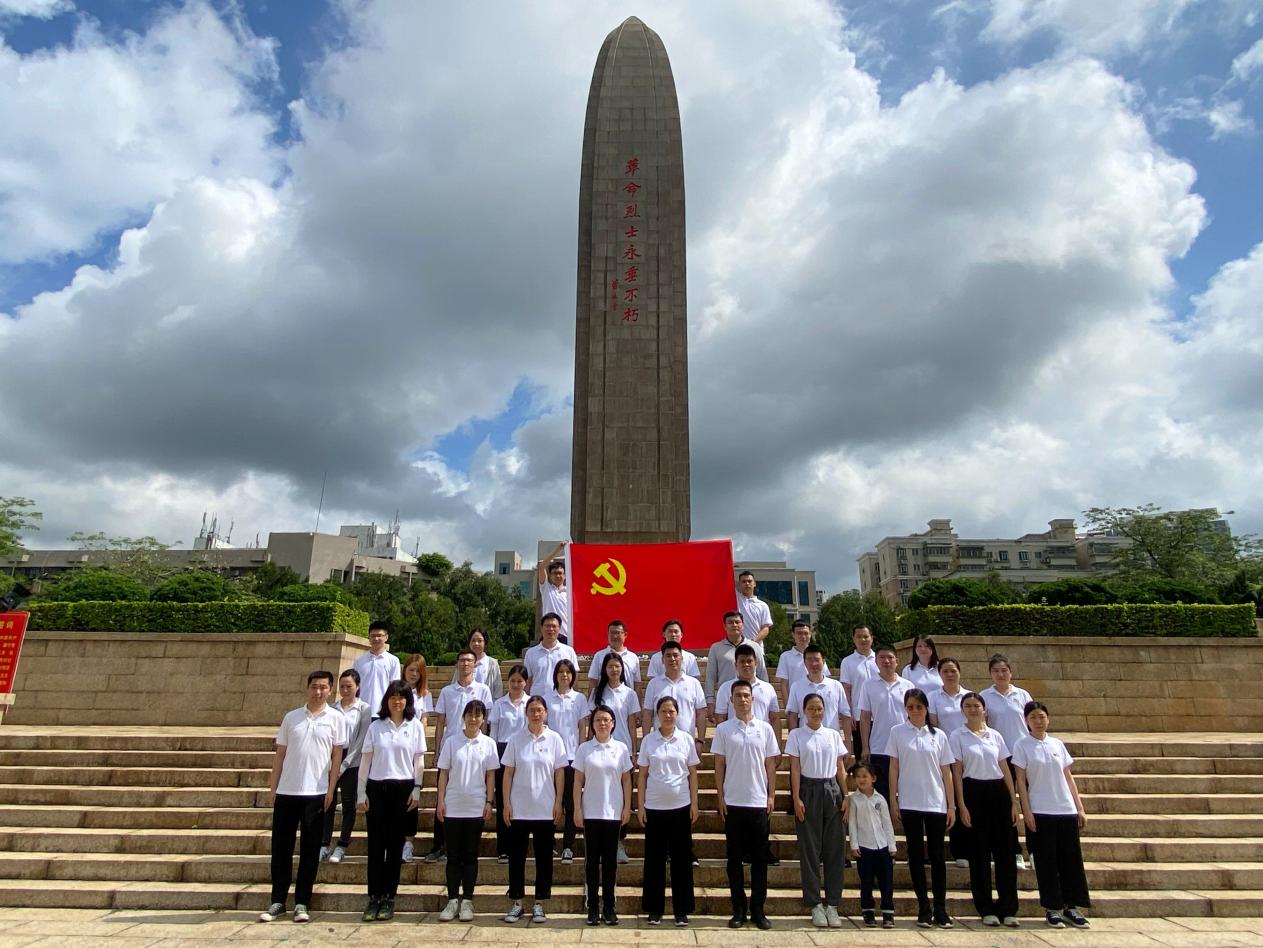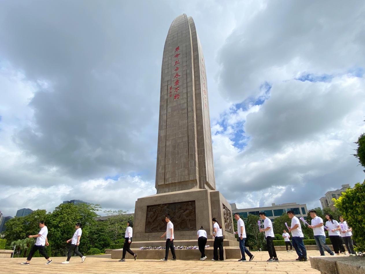 活動當天,大家首先瞻仰了深圳革命烈士紀念碑,碑身四面鐫刻著“革命烈士永垂不朽”八個大字,由當年東江縱隊司令員曾生同志書寫,烈士紀念碑碑座的北面浮雕是銅鑄碑文;西面浮雕反映抗日戰(zhàn)爭的壯烈場面;東面浮雕反映中國共產(chǎn)黨營救淪陷在香港的進步愛國人士和國際友人的斗爭場面;南面浮雕反映解放戰(zhàn)爭的場景,莊嚴肅穆。之后,全體人員在革命烈士紀念碑前肅立默哀并三鞠躬,敬獻白菊花,向長眠于此的革命先烈表達深切的哀悼,致以崇高的敬意。最后,在黨支部書記崔向超同志的帶領(lǐng)下,同志們面向鮮紅的黨旗,重溫入黨誓詞。鏗鏘有力、擲地有聲的80字入黨誓詞,時刻提醒著同志們牢記入黨初心,恪守入黨承諾,踐行黨的宗旨,始終堅定為中國特色社會主義偉大事業(yè)奮斗終身的決心。