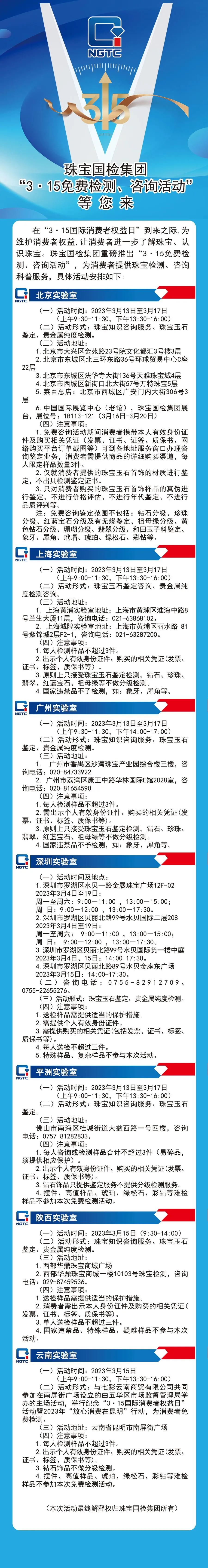 珠寶國檢集團“3·15免費檢測、咨詢活動”等您來