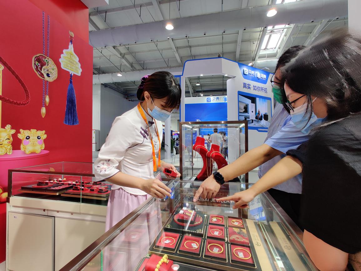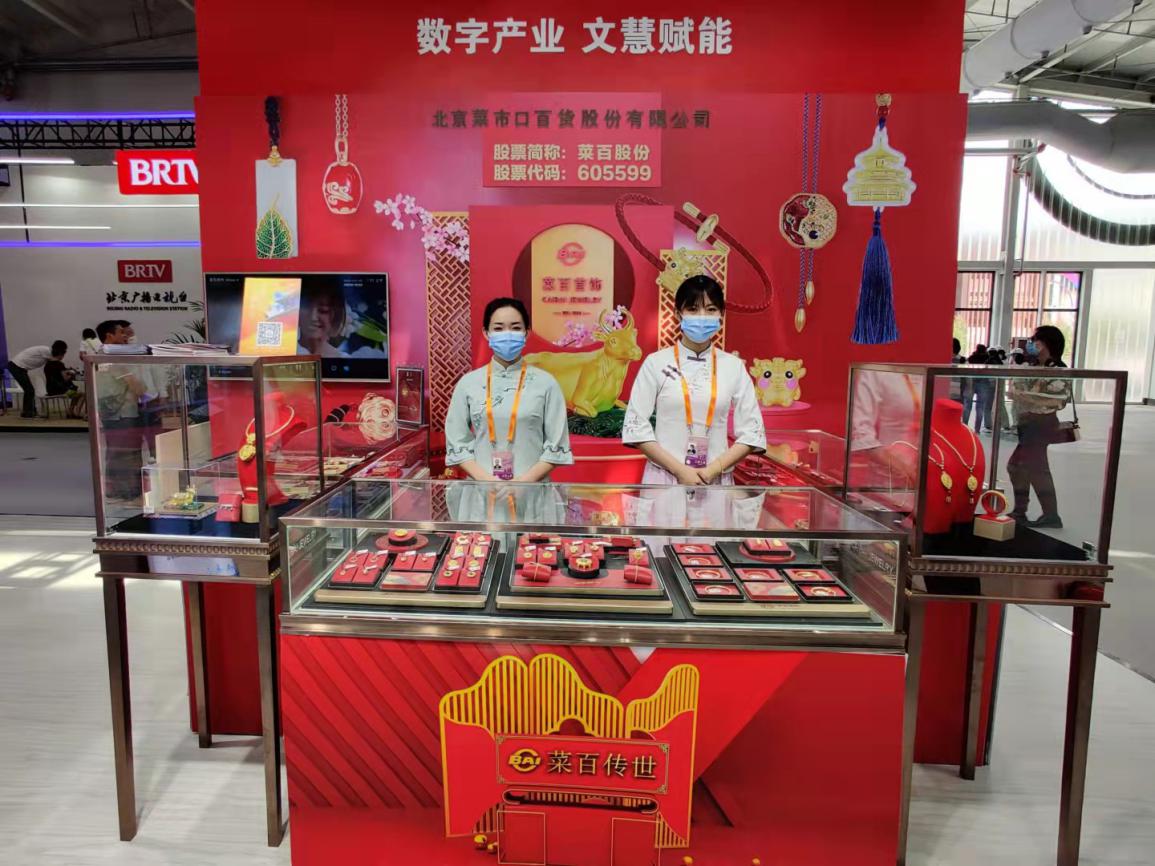 2021年中國國際服務(wù)貿(mào)易交易會于9月2日在北京拉開帷幕。作為我國對外開放三大展會平臺之一,服貿(mào)會已成為全球服務(wù)貿(mào)易領(lǐng)域規(guī)模領(lǐng)先的高水平展會。菜百股份作為重要受邀參展商亮相3個展館5個展區(qū):1號館文旅服務(wù)1C廳“紅墻意識 古都典范”展區(qū)、15號館北京老字號展區(qū),菜百首飾文創(chuàng)飾品也在3號館天壇、頤和園、首都博物館展位同步展出。