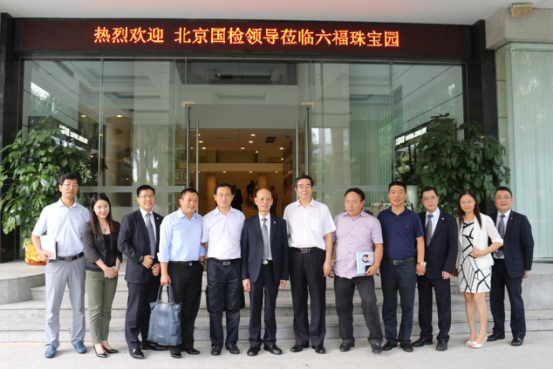 葉志斌主任(右六),畢立君同志(左五)、孫鳳民同志(右五)、北京實驗室主任周軍(右四)、廣州實驗室主任陶震東(左一)、副主任楊堅(左四)參觀六福珠寶園與六福珠寶董事羅廣發(fā)(左六)、六福珠寶技術(shù)總監(jiān)徐建華(右三)合影