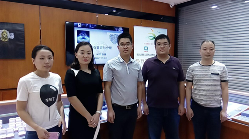 國(guó)土資源部珠寶玉石首飾管理中心研究部技術(shù)主管張?。ㄖ校└呒?jí)工程師與承辦企業(yè)負(fù)責(zé)人合影