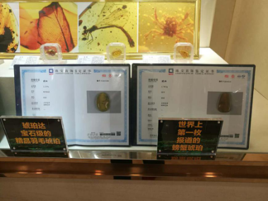 展覽現(xiàn)場,所有的蟲珀標(biāo)本均帶有國家珠寶玉石質(zhì)量監(jiān)督檢驗(yàn)中心(NGTC)的鑒定證書,使消費(fèi)者在了解生命科學(xué)的同時(shí),普及了對于鑒定證書的認(rèn)識與使用。