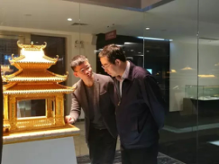 葉志斌同志(右)在廖創(chuàng)賓先生(左)的陪同下參觀潮宏基博物館