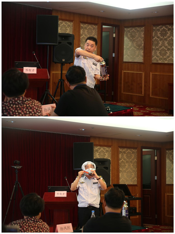北京市公安消防教育中心喬有才現(xiàn)場講解滅火器械的使用方法