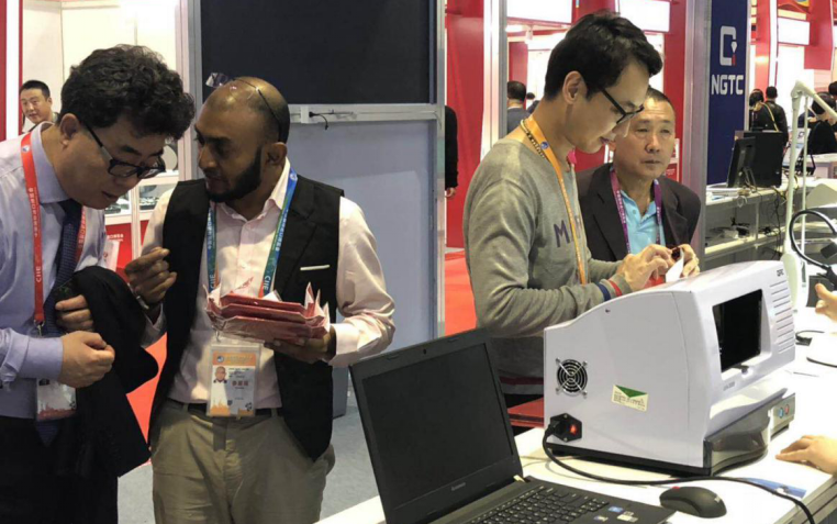 首屆中國(guó)國(guó)際進(jìn)口博覽會(huì)期間,NGTC免費(fèi)檢測(cè)咨詢展位人頭攢動(dòng),除了大量消費(fèi)者拿著自己新買的寶貝來請(qǐng)專家鑒定咨詢外,NGTC的展臺(tái)也吸引了不少珠寶參展商的關(guān)注,國(guó)外商家紛紛希望NGTC可以來到他們的國(guó)家,為商家提供更加便捷的檢測(cè)服務(wù)。