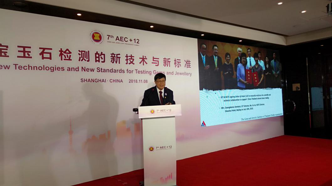2018年11月8日,首屆中國(guó)國(guó)際進(jìn)口博覽會(huì)分論壇——第七屆“東盟+12國(guó)寶石與珠寶總裁峰會(huì)”(以下簡(jiǎn)稱:“AEC+12”)正式開幕,這是AEC第一次在東盟外地區(qū)舉辦。上海市人大常委會(huì)副主任肖貴玉,中國(guó)珠寶玉石首飾行業(yè)協(xié)會(huì)(GAC)會(huì)長(zhǎng)徐德明,國(guó)家珠寶玉石質(zhì)量監(jiān)督檢驗(yàn)中心(NGTC)副主任張曉、畢立君,東浩蘭生集團(tuán)總裁曹煒、上海市商務(wù)委員會(huì)副巡視員李泓、東盟珠寶商會(huì)主席陳蘇迪鵬、日本神戶市副市長(zhǎng)岡口憲義、世界鉆交所聯(lián)盟副主席暨上海鉆石交易所總裁林強(qiáng)等領(lǐng)導(dǎo)及國(guó)內(nèi)外專家學(xué)者近百人參加峰會(huì)。