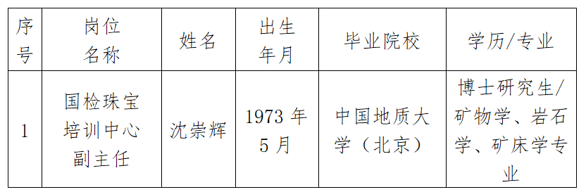 自然資源部珠寶玉石首飾管理中心擬聘人選公示