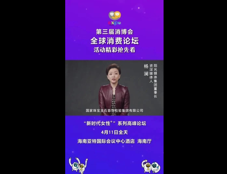 楊瀾:消博會(huì)和“新時(shí)代女性+”系列高峰論壇我們不見(jiàn)不散!