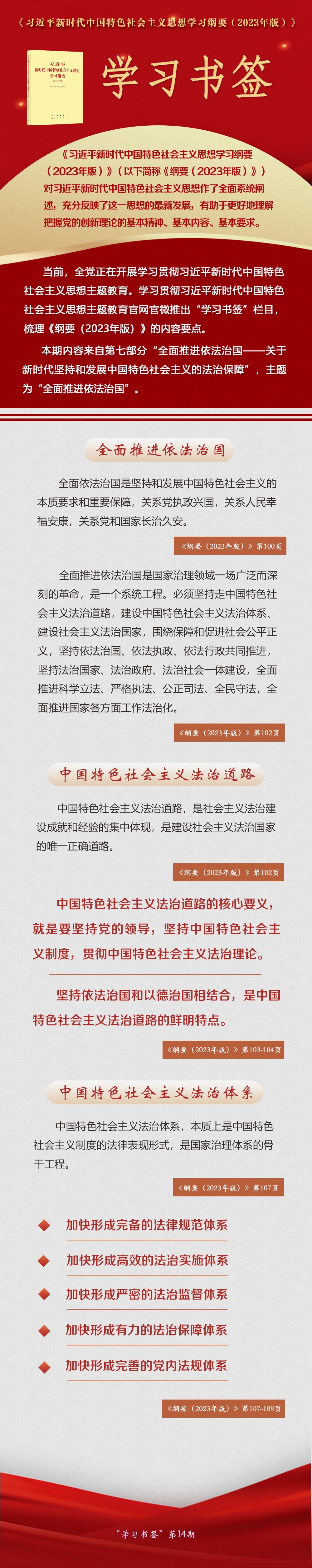 《習(xí)近平新時(shí)代中國(guó)特色社會(huì)主義思想學(xué)習(xí)綱要(2023年版)》 學(xué)習(xí)書簽丨全面推進(jìn)依法治國(guó)