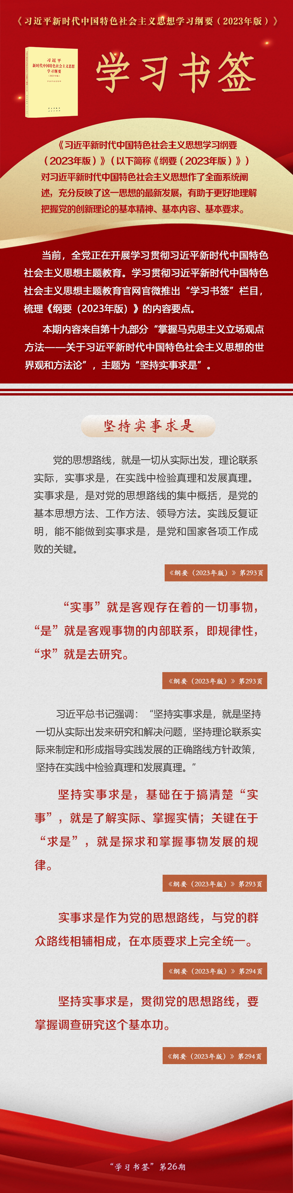 《習近平新時代中國特色社會主義思想學習綱要(2023年版)》 學習書簽丨堅持實事求是