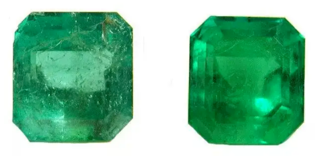 祖母綠浸油前(左圖)和浸油后(右圖)