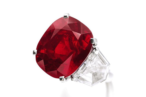 緬甸作為古老的紅寶石產(chǎn)地,幾個(gè)世紀(jì)以來陸續(xù)發(fā)現(xiàn)過許多大顆粒、高品質(zhì)的紅寶石。2015年5月,一顆25.59克拉的緬甸“鴿血紅”紅寶石在拍賣會(huì)上以2,625萬(wàn)瑞士法郎(約合3,033萬(wàn)美元)落槌成交,創(chuàng)下了當(dāng)時(shí)紅寶石最高成交價(jià)紀(jì)錄及非鉆石類寶石最高成交價(jià)紀(jì)錄。這顆名為“日出紅寶石”(The SunriseRuby)的晶體,曾是法國(guó)珠寶商卡地亞的收藏品,這顆紅寶石的成交價(jià)也刷新了當(dāng)時(shí)卡地亞珠寶的拍賣成交價(jià)紀(jì)錄。
