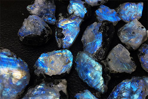 顏色:它呈無色至白色,還有紅棕色、綠色、暗褐色,透明或半透明,常見藍色、無色或黃色暈彩,具有特征的月光效應