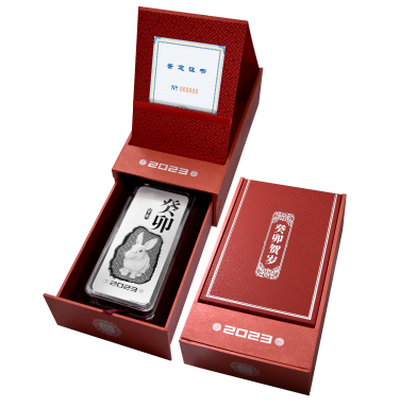癸卯(兔)年發(fā)行的賀歲銀條規(guī)格共計(jì)六種:1,000克、500克、200克、100克、50克和15克,最大發(fā)行量分別為600條、1,500條、3,000條、21,000條、36,000條和10,000條,成色均為99.9%。本套銀條在延續(xù)經(jīng)久不衰的生肖主題的同時(shí),秉承一貫的設(shè)計(jì)和工藝風(fēng)格,采用鏡面、浮雕、噴砂等先進(jìn)工藝,線條細(xì)膩、層次分明,既具有收藏投資價(jià)值,又具有藝術(shù)觀賞價(jià)值,是一款值得入手的藝術(shù)藏品。