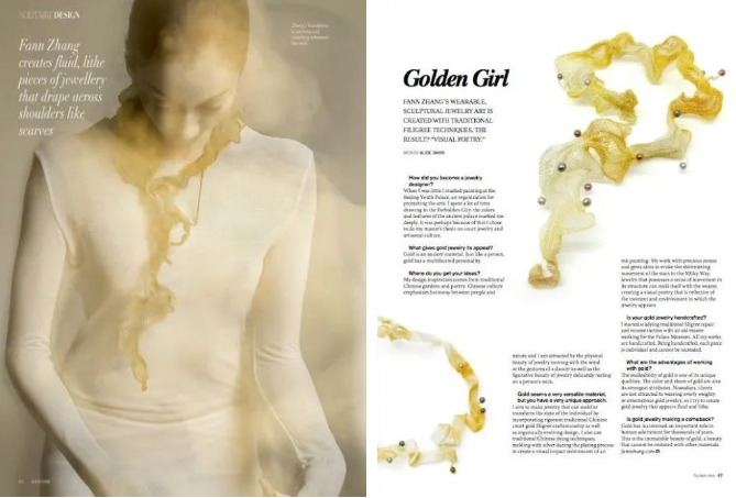 國外很多媒體對這個(gè)系列的作品特別感興趣,大家也在探討什么是新時(shí)代的奢侈品,其實(shí)它不僅僅是材料的名貴,還要有地域的文化特征,以及把各地域的傳統(tǒng)文明轉(zhuǎn)化成現(xiàn)代文明的設(shè)計(jì)手法。在整個(gè)系列作品的制作過程中,我也考慮了珍珠和人之間的搭配關(guān)系。因?yàn)檎渲楸旧聿⒉幌裼行毷敲磽屟?,它很溫潤、很柔和,所以其?shí)它自己本身有很好的保護(hù)屬性,能夠幫助形成非常好的人與自然之間的鏈接關(guān)系。