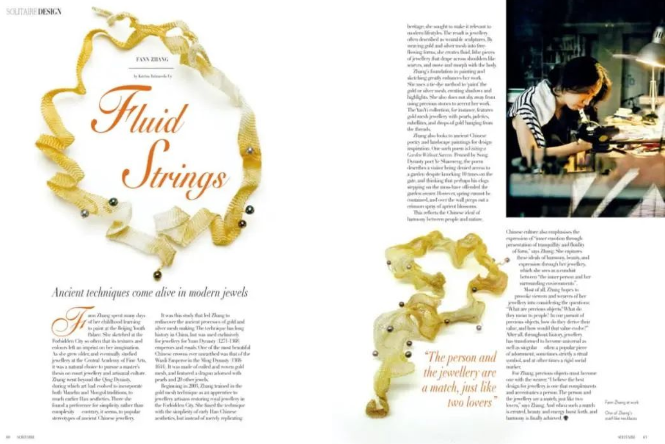 《衍異》系列作品有很多簡約的線條,跟珍珠的結(jié)合也非常巧妙,很多外國朋友也特別喜歡。瑞士前任大使夫人在參加“一帶一路”倡議相關(guān)活動時(shí),特別佩戴了這樣的珍珠項(xiàng)飾,她認(rèn)為這款項(xiàng)飾既具有中國風(fēng)格,又具有很好的現(xiàn)代性、世界性。