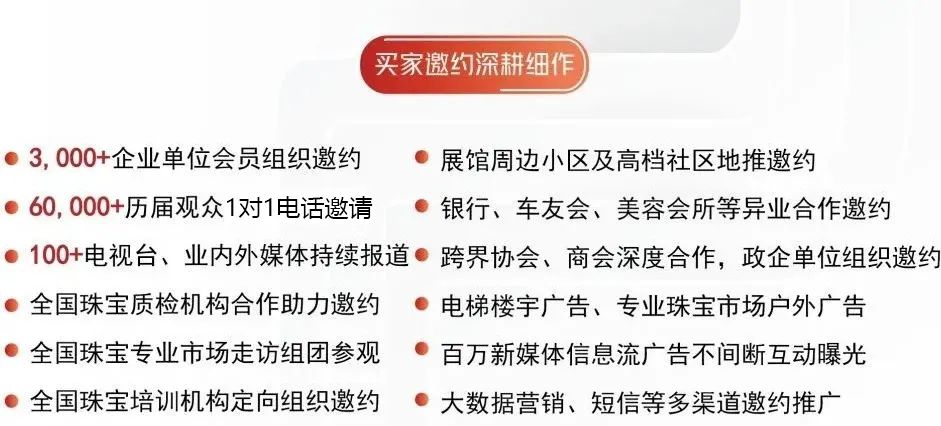 中國國際珠寶展旨在通過展、論、秀、節(jié)等豐富的活動,打造多功能復合型展會平臺,致力于持續(xù)為中國珠寶行業(yè)搭建更全面、更專業(yè)、更有深度的合作橋梁。